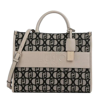 Borsa Donna a Mano Large LIU JO in Tessuto Jacquard Beige con Logo Monogram All Over