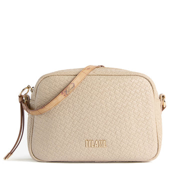 La tracollina Golden Dune ha una linea compatta e al contempo morbida che esalta il nuovo tessuto effetto pelle intrecciata, impreziosito dal logo 1ᴬ Classe in oro chiaro. I toni caldi della stampa Geo Classic partecipano al mood estivo ricoprendo la tracolla regolabile e il dettaglio del tiralampo, completato dai luminosi finalini dorati che tintinnano a ogni passo. Un modello dall'attitude casual curato nei dettagli, perfetto da abbinare a jeans e camicie ampie e ad abiti estivi per un pomeriggio di svago.