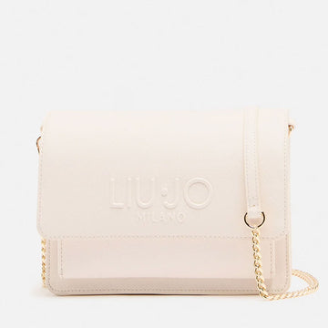 Borsa stampa saffiano chiusa con pattina. Interno diviso in due scomparti. Maxi logo frontale ton sur ton. Tracolla removibile in catena. Prodotto "Liu Jo Better".