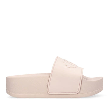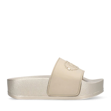 Ciabatte con maxi fascia con logo monogram in rilievo. Suola platform.