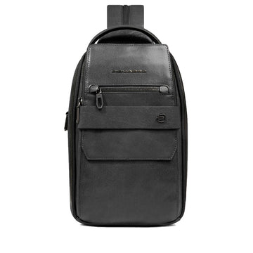 Monospalla porta iPad Mini Piquadro linea Solm in pelle nera.