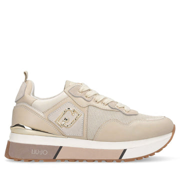 LIU JO Maxi Wonder 01 Damen Plateau-Sneaker aus weißem Leder und Brighty Mesh
