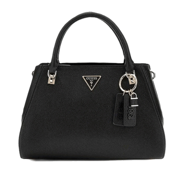 Borsa donna due manici in ecopelle stampa saffiano. Unico scomparto foderato e organizzato chiuso con zip. Tasche interne organizzate. Logo Guess in metallo sul davanti e charm removibile all'altezza del manico. Due manici in ecopelle della lunghezza circa di 35 cm. Tracolla regolabile e removibile in ecopelle della lunghezza di 110/130 cm circa. Tasca esterna chiusa con zip.
