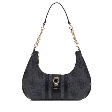 Borsa piccola a spalla in ecopelle logata. Unico scomparto organizzato e foderato, chiuso con zip e una tasca posteriore chiusa con zip. Logo Guess sul davanti. Fascia frontale a contrasto. Manico in ecopelle e catena della lunghezza di ca. 45 cm.