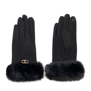Guanti Donna LIU JO in Tessuto Nero con Inserto in Eco Pelliccia