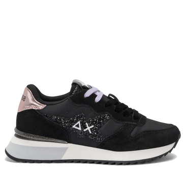 Innovativa, leggera ed estremamente femminile, Stargirl Glitter è la sneaker SUN68 che illumina i look quotidiani. La patch con glitter sul lato reinterpreta il logo in chiave moderna, mentre lo spoiler sul retro è rifinito con materale effetto snake.