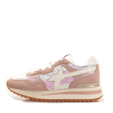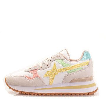 Scarpe Donna W6YZ Sneakers Yak-W. in Suede Glitter e Nylon colore White Pink e Yellow