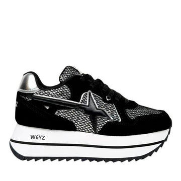 Sneakers Platform Donna W6YZ Deva-W. in Suede e Rete Glitter Black Silver