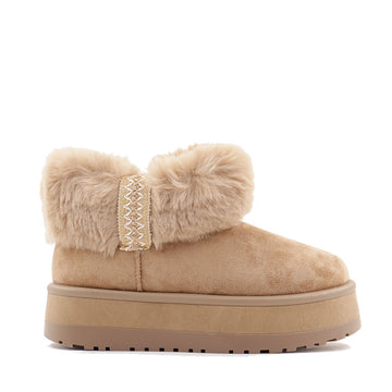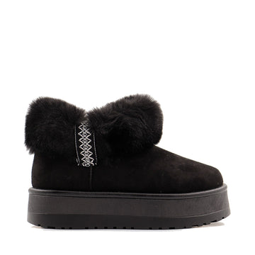 Lo stivaletto in tessuto sintetico e eco pelliccia avvolge il piede in una morbidezza da sogno ed è in grado di assorbire l’umidità. Impreziosito dal bordo in eco pelliccia con ricamo. La suola in eva ultraleggera con plateau, offre qualche centimetro in più e una calzata stabile.