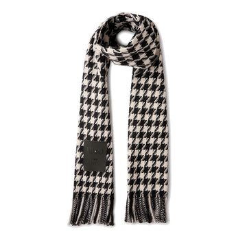 Stola in tessuto jacquard con motivo vichy. Patch logato.