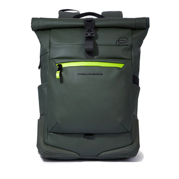 Zaino realizzato in tessuto gommato con chiusura roll top Piquadro linea Corner.